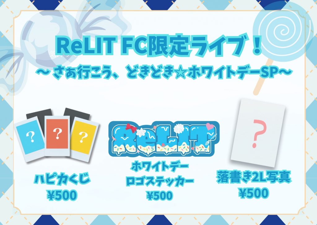 この度、ReLIT 初のFC限定イベント「ReLIT FC限定ライブ!〜 さぁ行こう、どきどき☆ホワイトデーSP〜」を開催いたします!